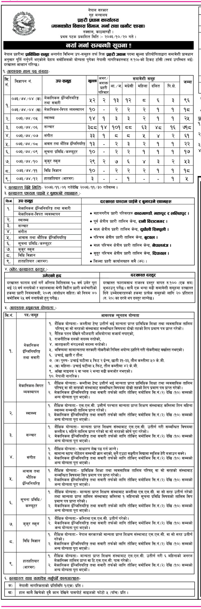 Vacancy at Nepal Police Notice